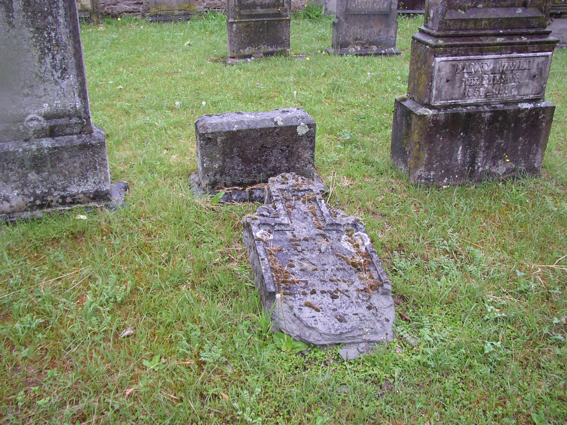Die meisten Grabsteine haben nur hebräische Inschriften, hier ein