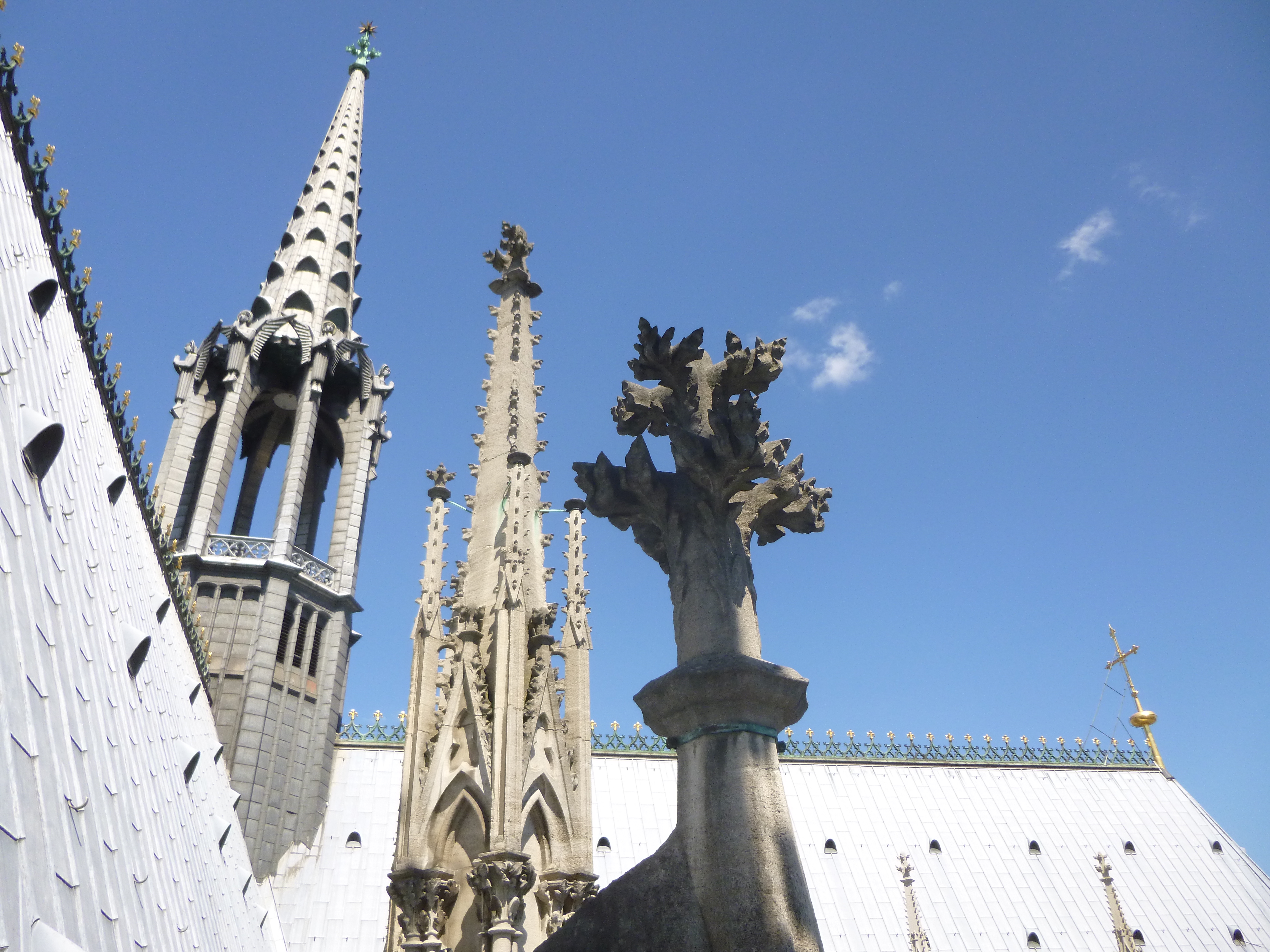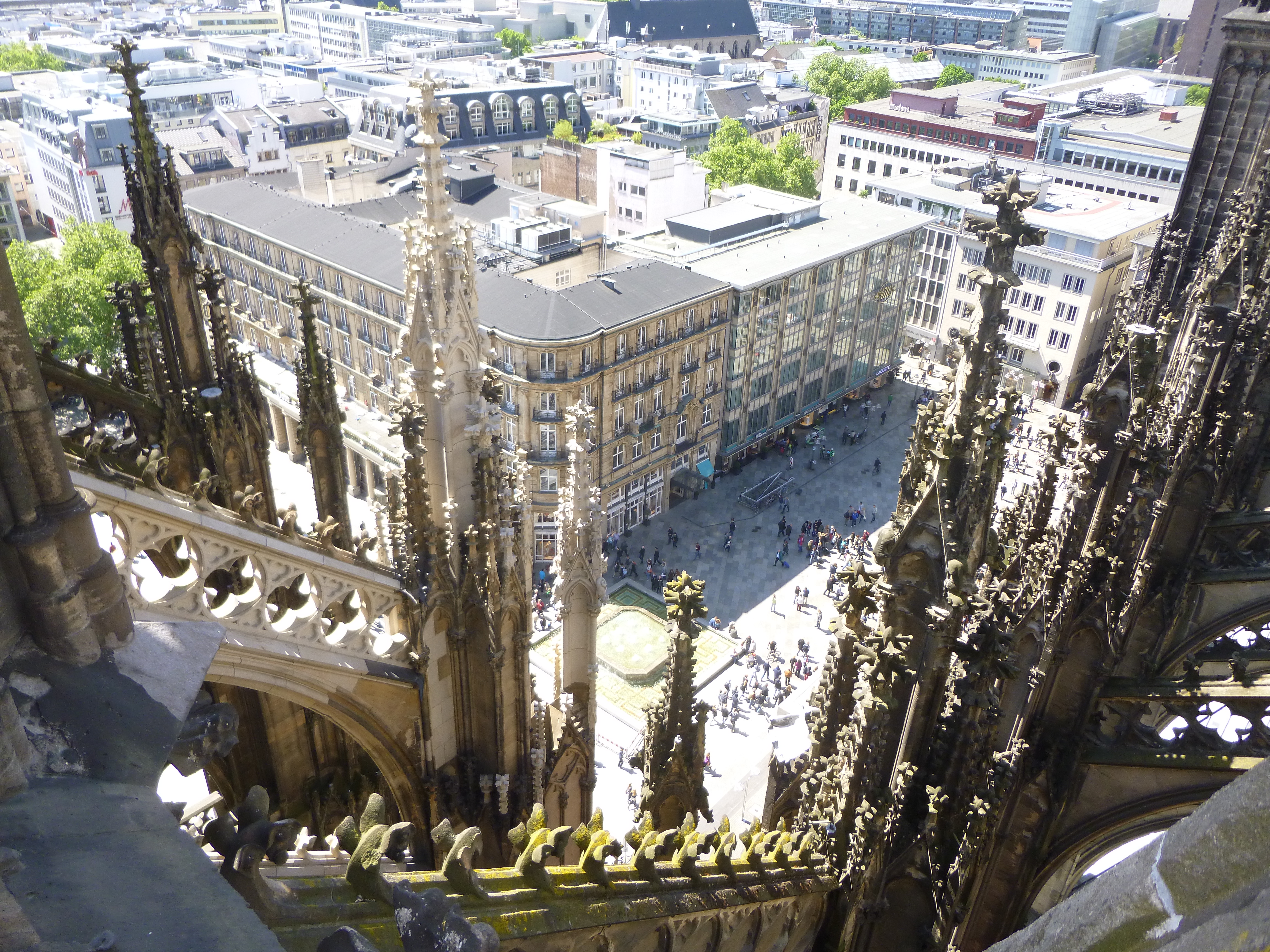 auf dem Dom![]() der Nordturm ![]() die Vierung ![]() die Vierung ![]() die Kreuzblume ![]() auf dem Rundgang aussen ![]() Blick durch die Strebepfeiler auf den Roncalli-Platz ![]() ein Modell des Baukrans, der jahrhunderte lang auf dem Südturm stand ![]() ein Modell, Nordseite ![]() ein Modell, Südseite ![]() Blick nach Süden, zum Siebengebirge |