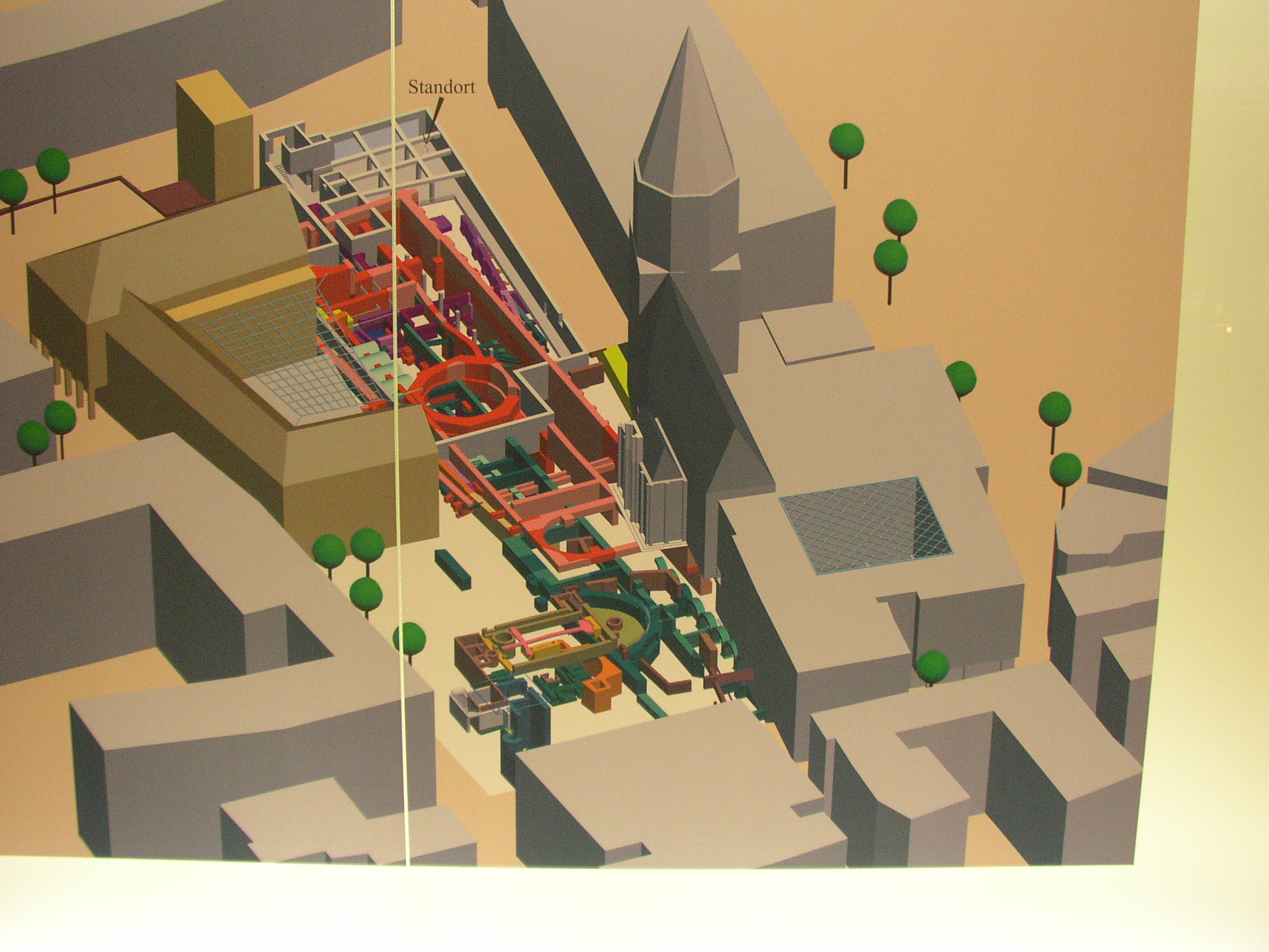 computergestützte Visualisierung der Überreste innerhalb des heutigen Köln (Foyer des