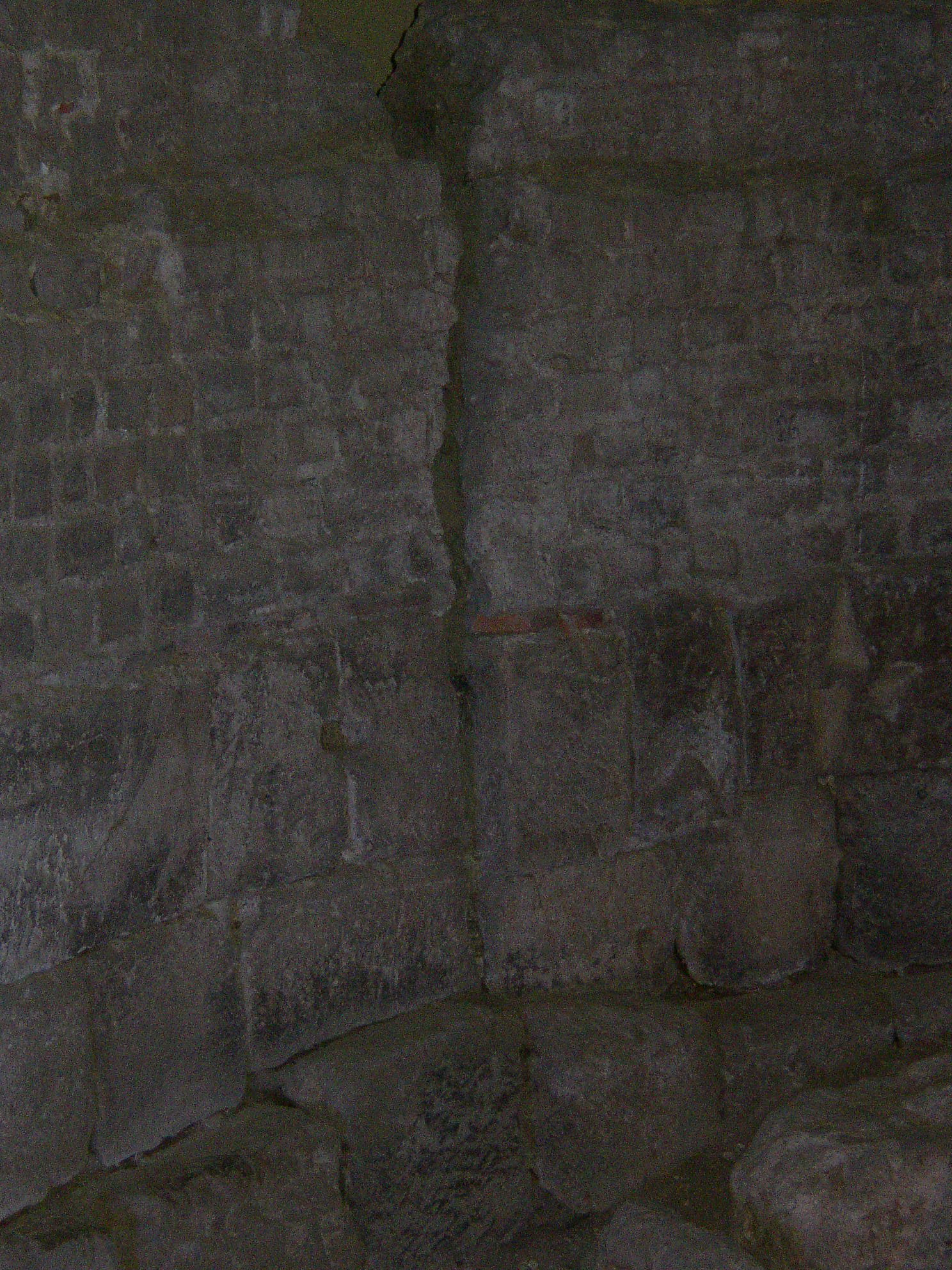 im Oktogon: nachlässige Arbeit der Handwerker, Steinblöcke unten in Zweitverwendung