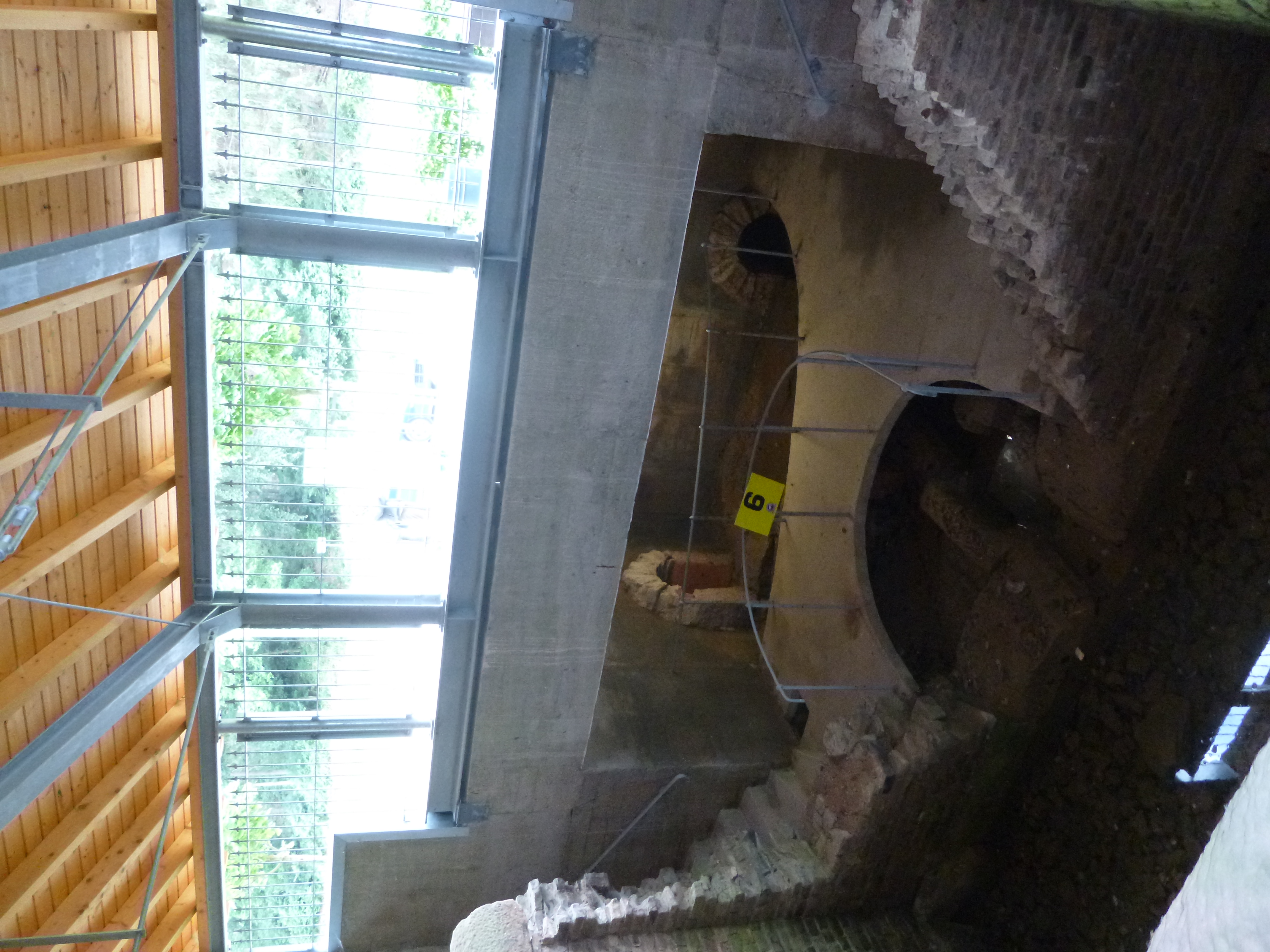 der Schutzbau unmittelbar vor der Vollendung 2013: das Dach ist aufgeständert, dadurch