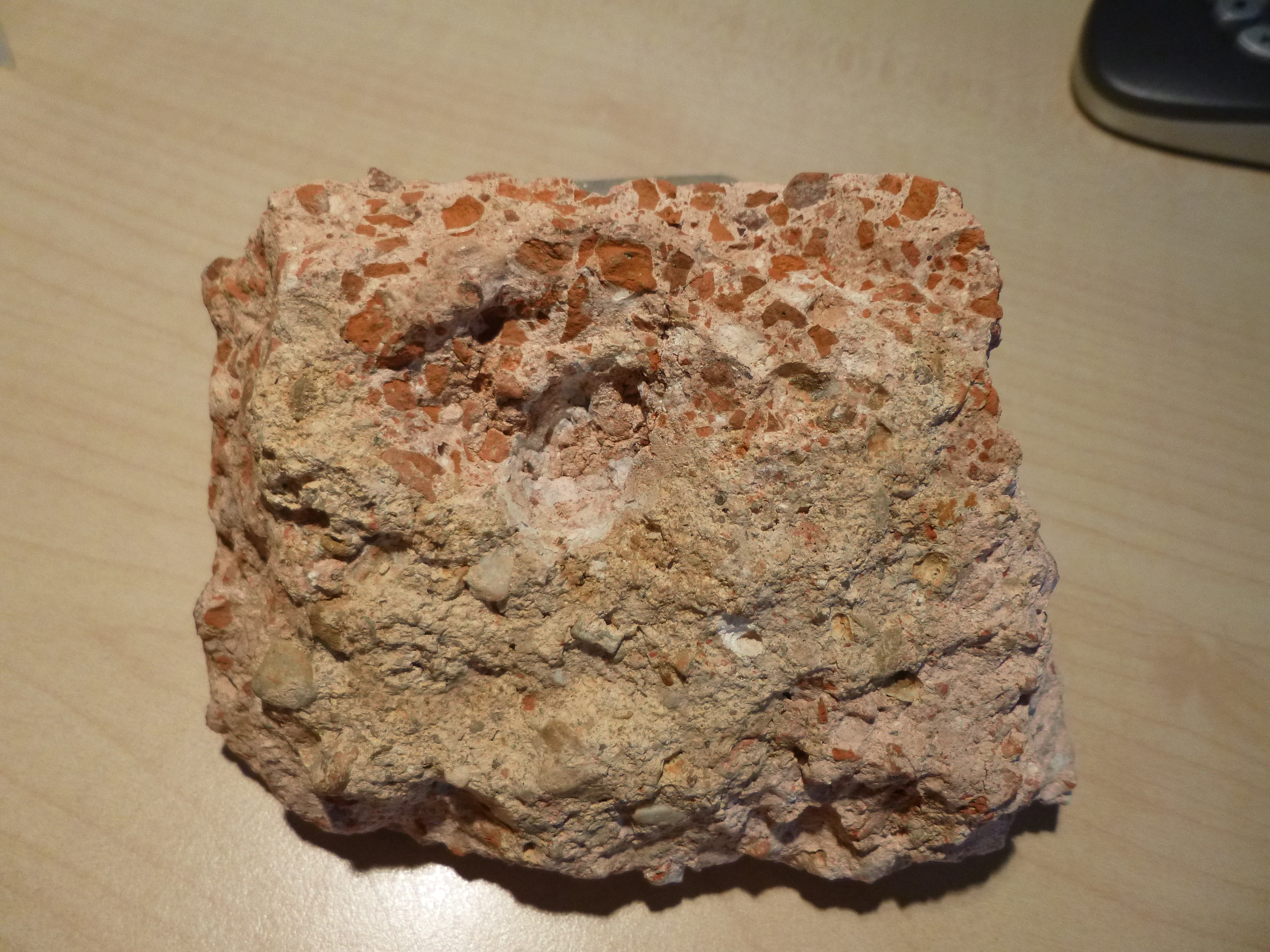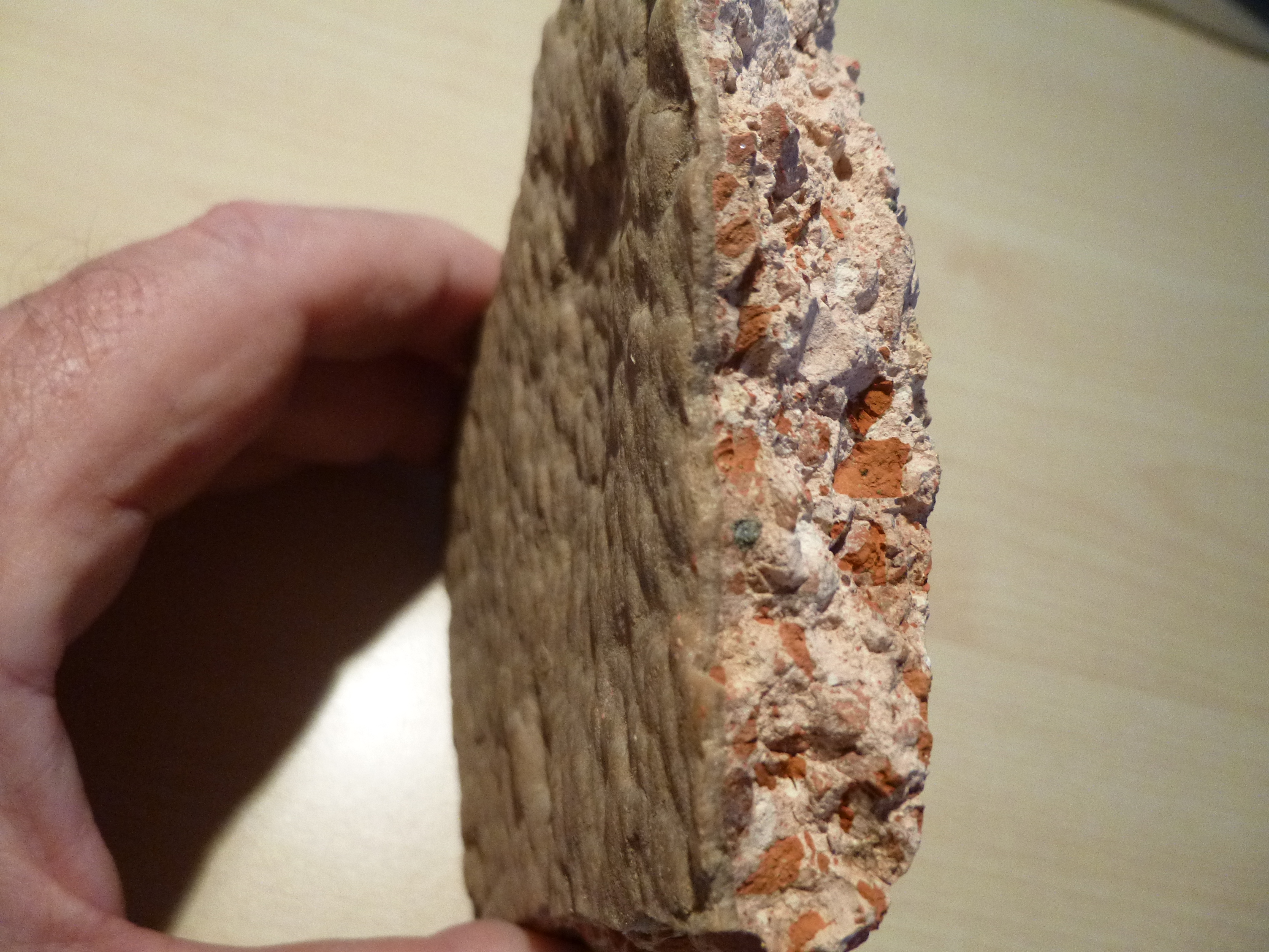 dahinter/obere Hälfte: Tonziegelkleinschlag = der Verputz der