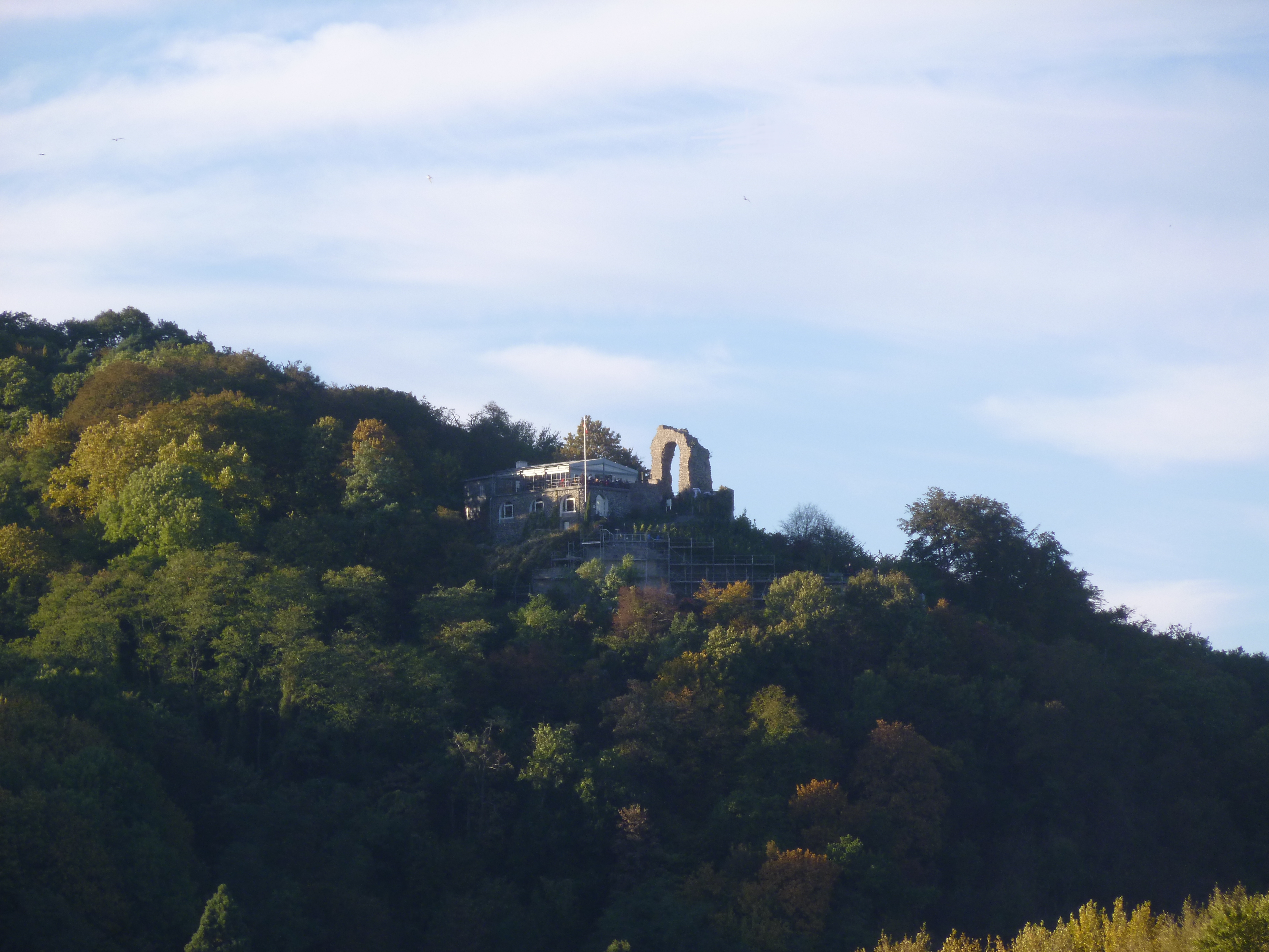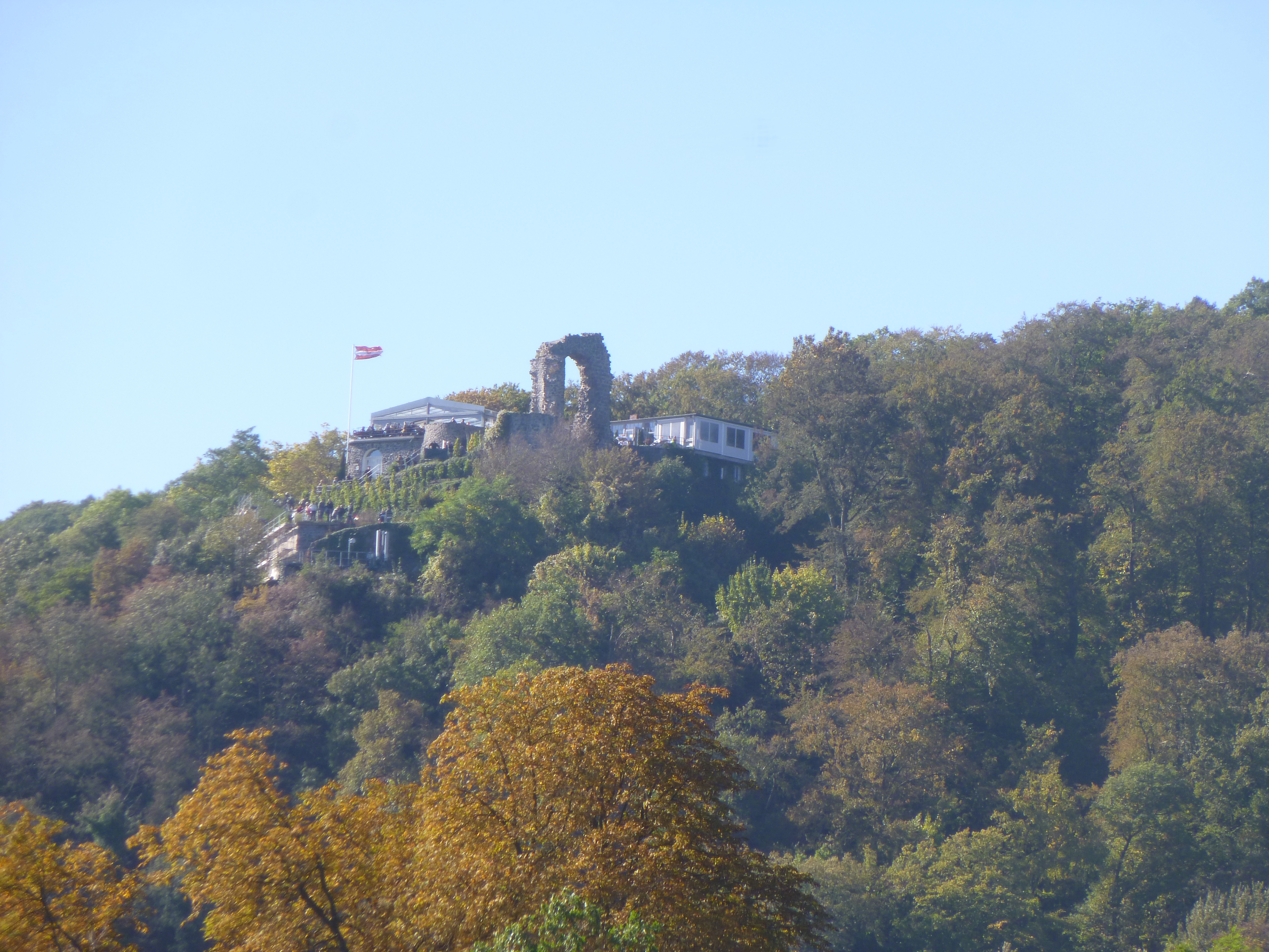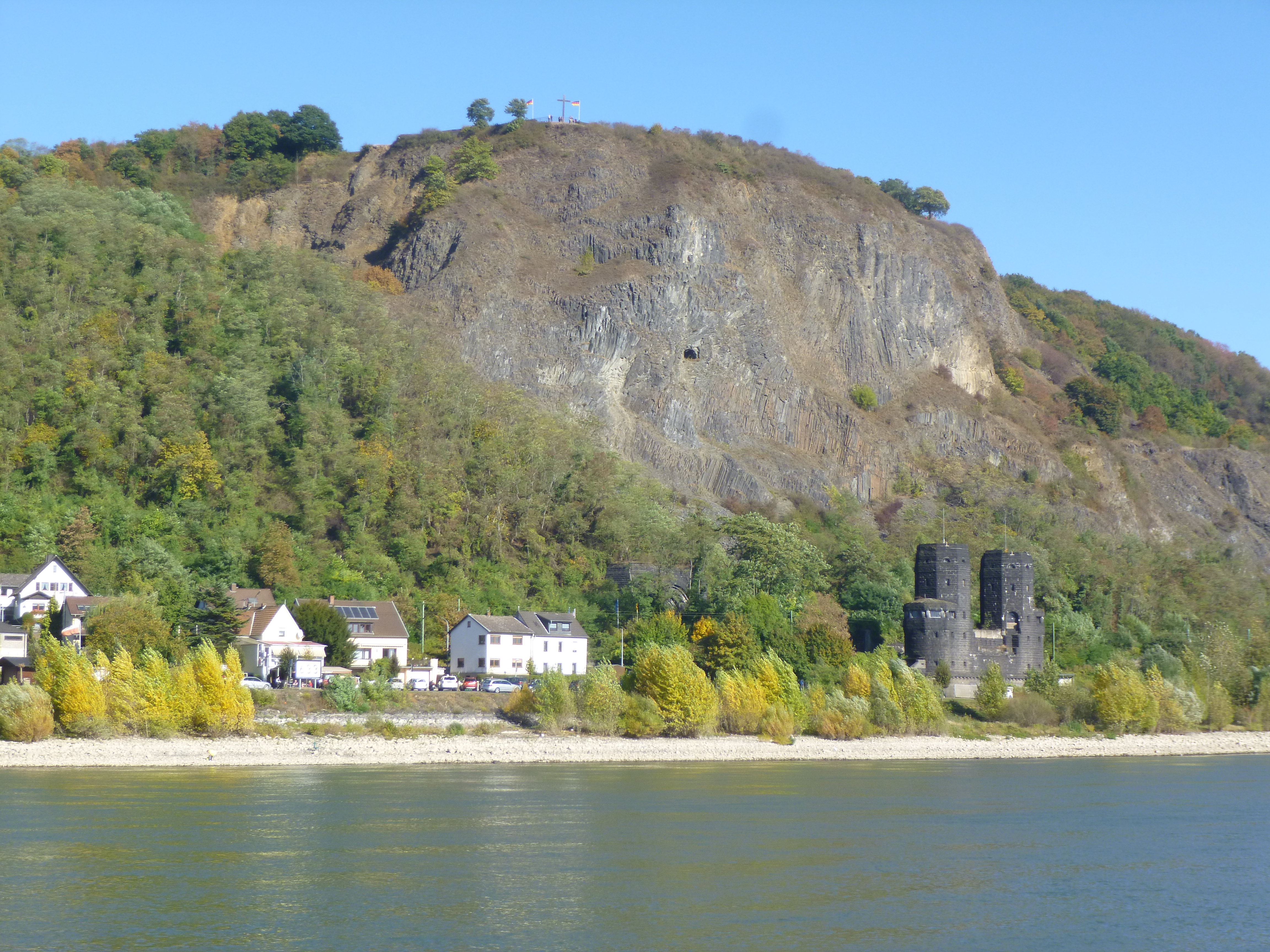 für den Kölner Dom. Ab 1138 eine kölnische Burg, 1634 zerstört. Ein sagenhafter Drachen soll dem Berg seinen Namen gegeben haben. Anfang des 19. Jhdts. wird der Drachenfels zentraler Ort der europäischen Rhein-Romantik. Seit 1883 fährt eine Zahnradbahn auf den Gipfel. Am Fusse des Drachenfels Weinanbau. |