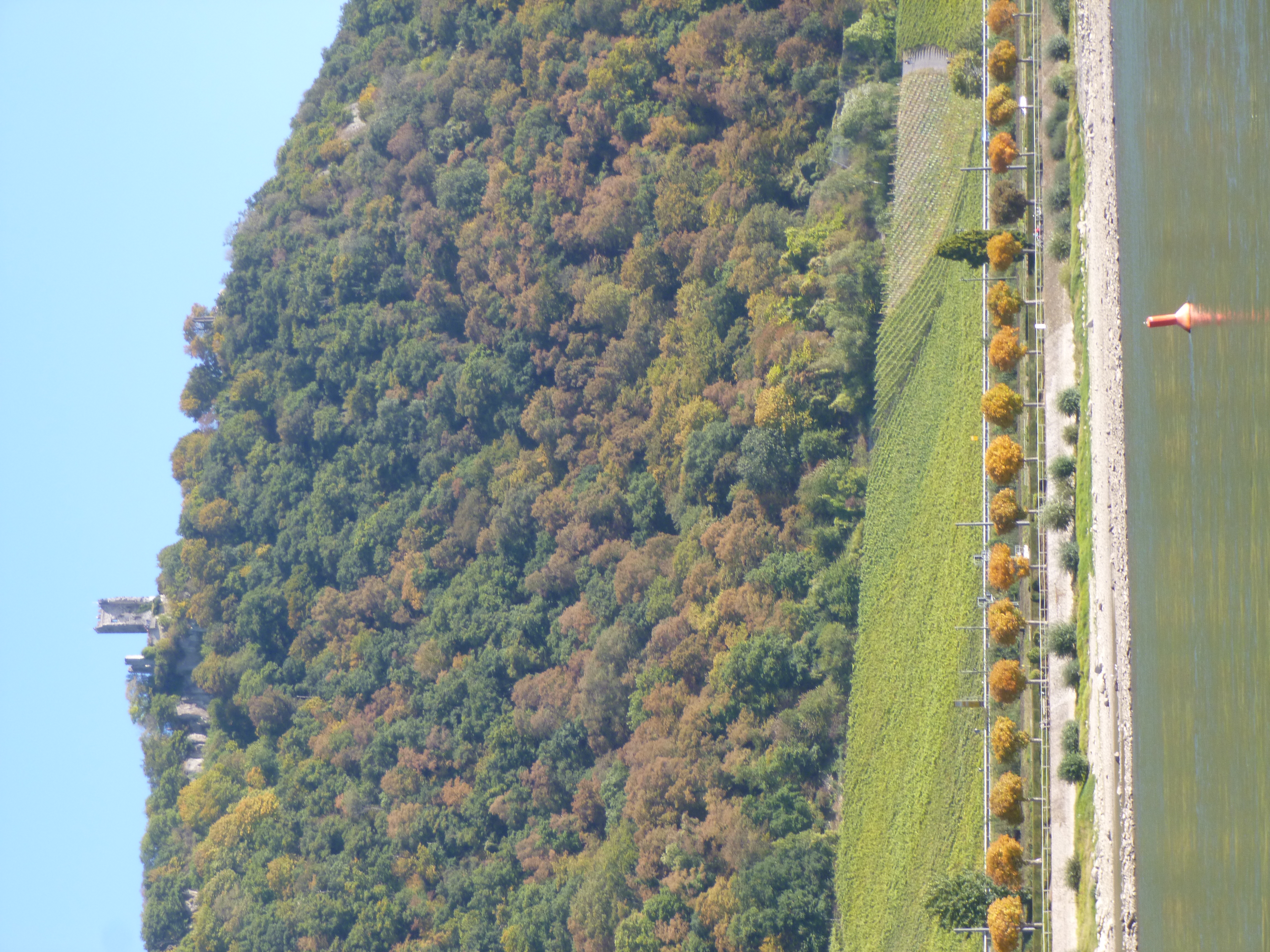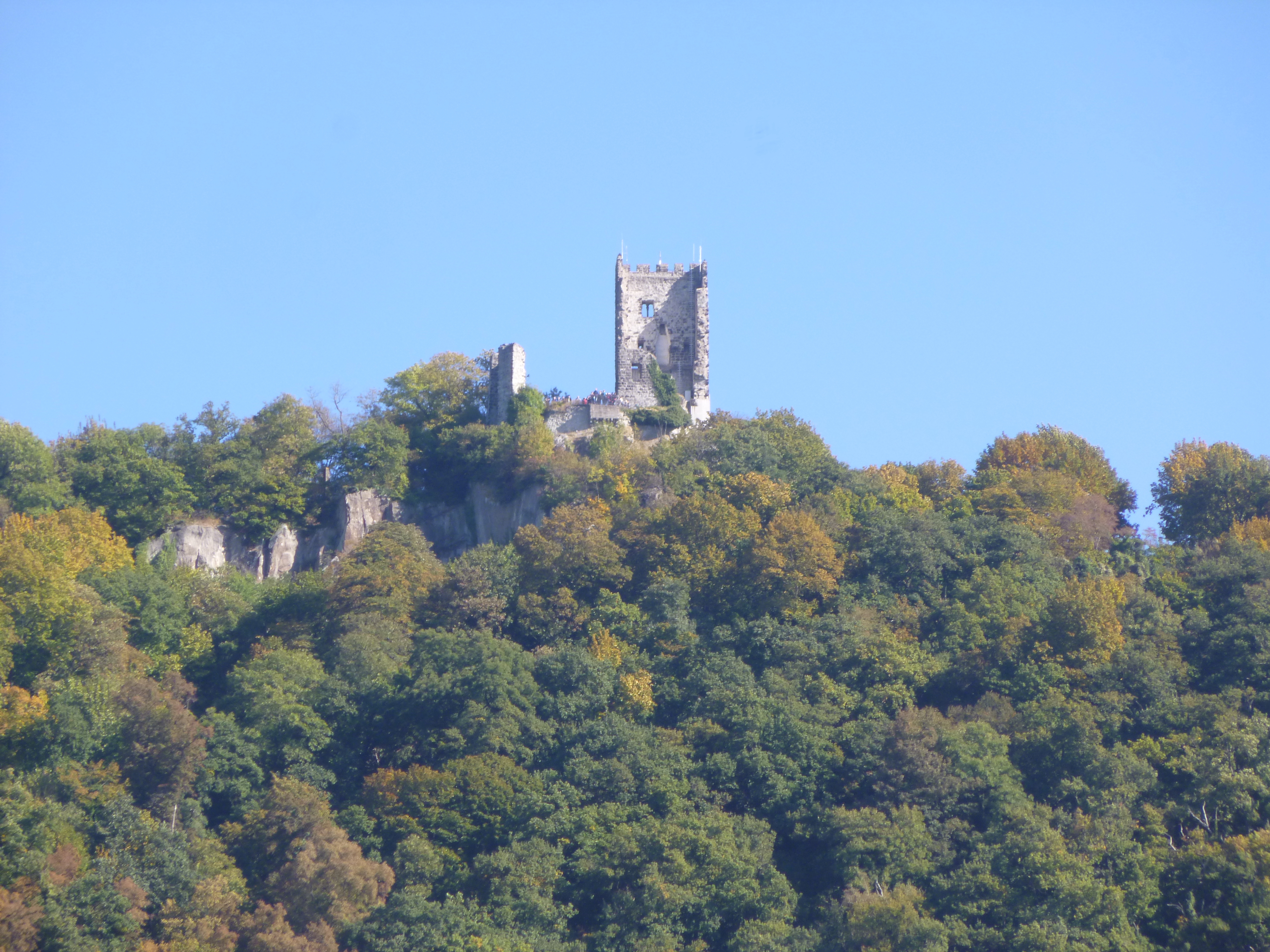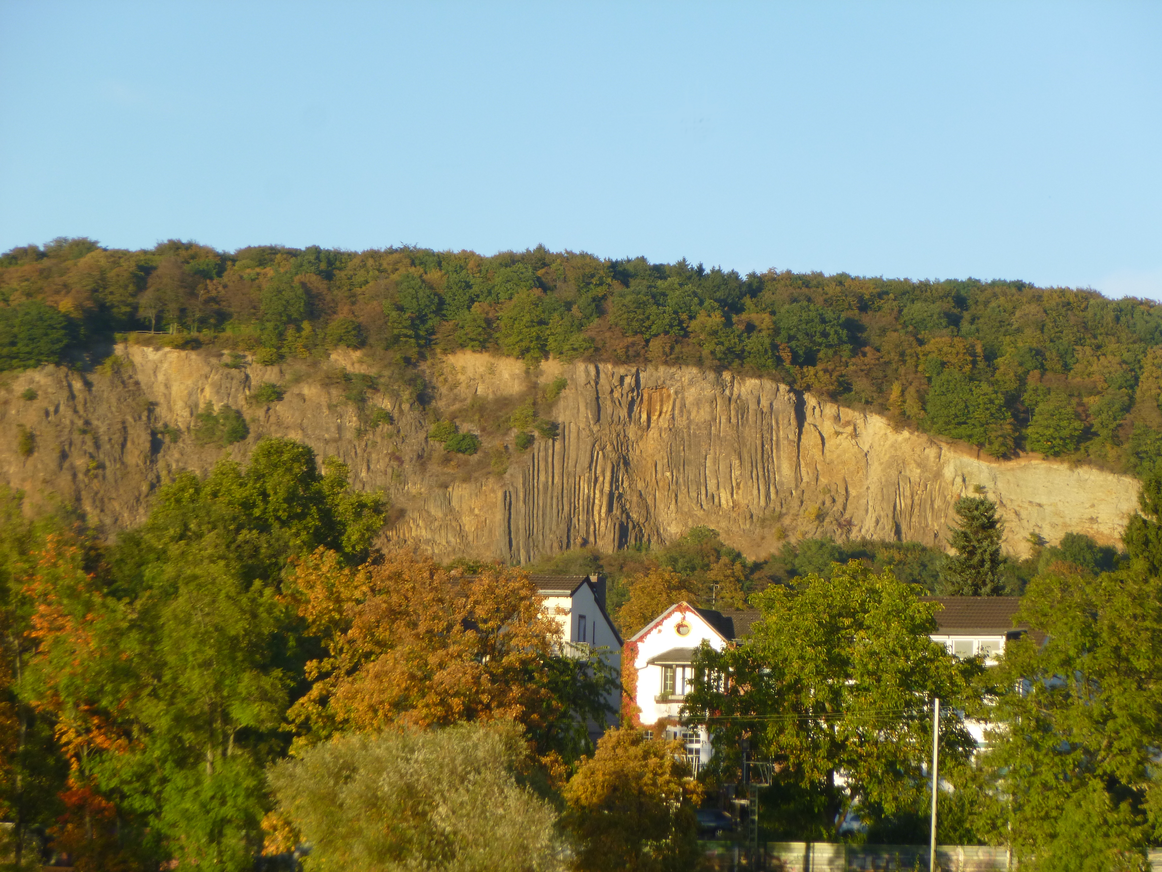 für den Kölner Dom. Ab 1138 eine kölnische Burg, 1634 zerstört. Ein sagenhafter Drachen soll dem Berg seinen Namen gegeben haben. Anfang des 19. Jhdts. wird der Drachenfels zentraler Ort der europäischen Rhein-Romantik. Seit 1883 fährt eine Zahnradbahn auf den Gipfel. Am Fusse des Drachenfels Weinanbau. |