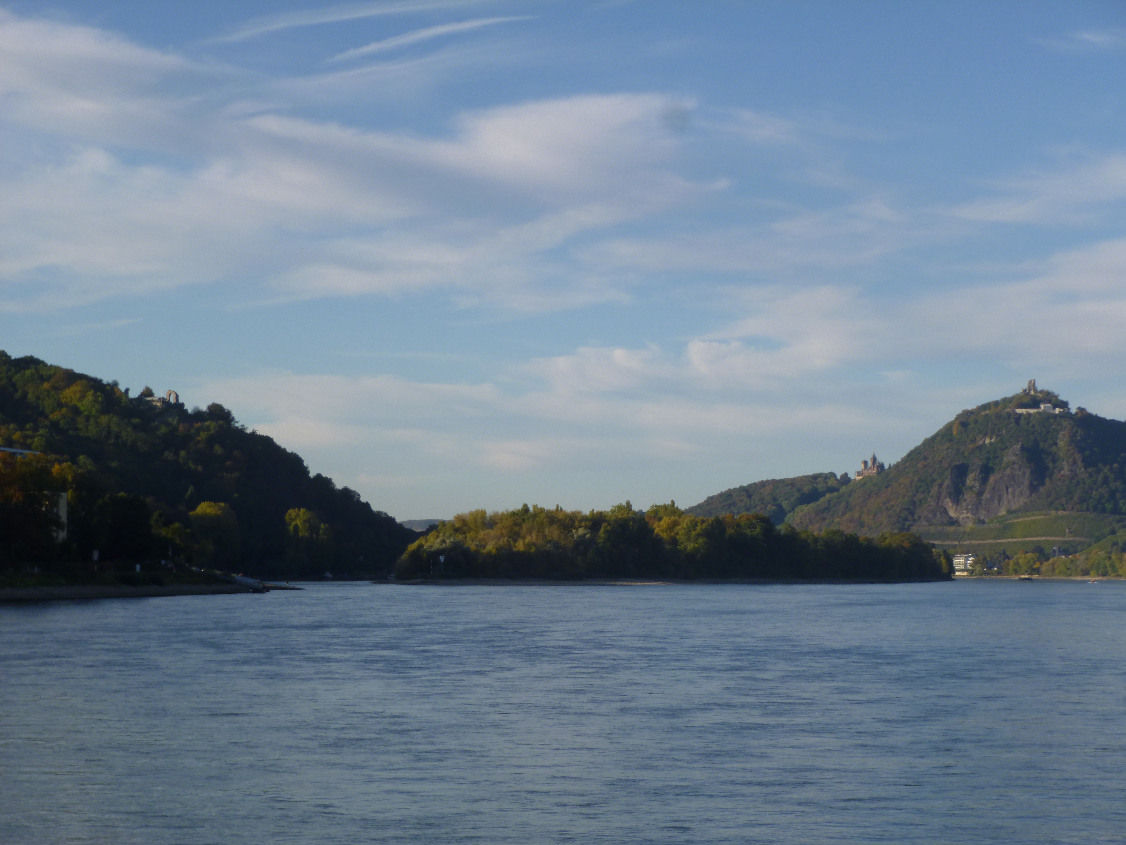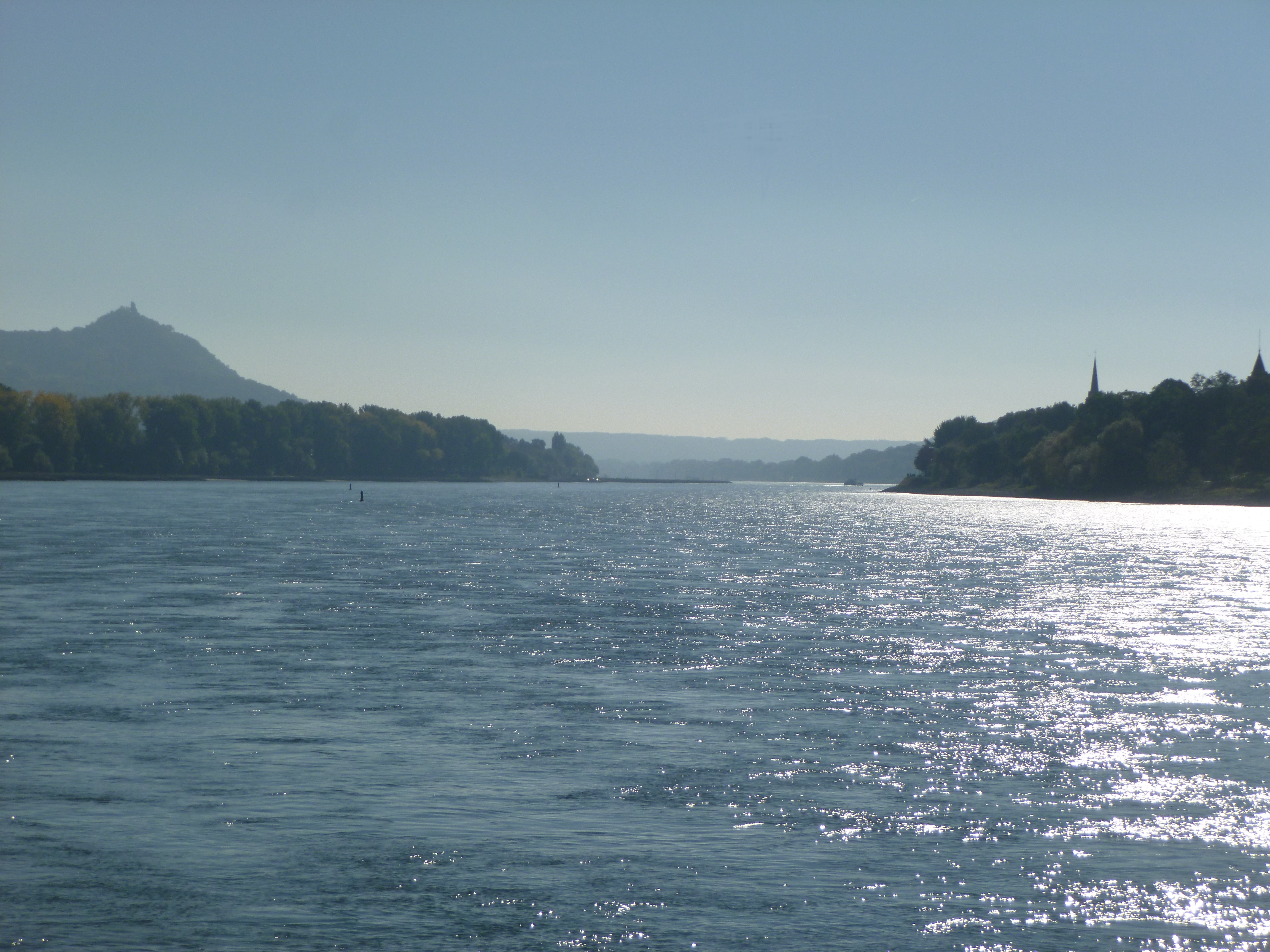 Der Rhein bei Oberkassel, im Hintergrund der Drachenfels. | |