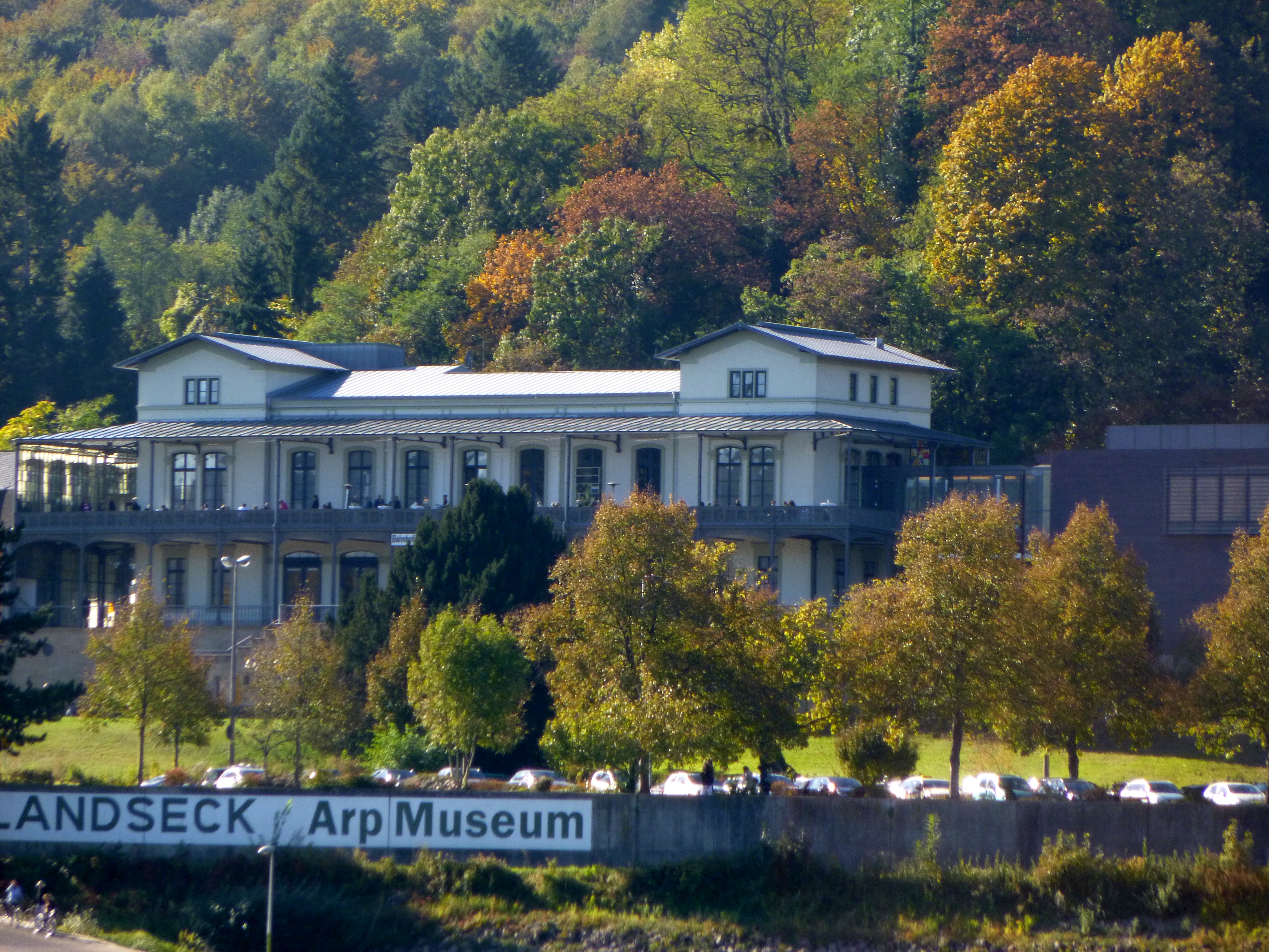 Der Bahnhof Rolandseck, seit 1858 Endpunkt der Bonn-Cölner Eisenbahn. Das Empfangsgebäude wurde repräsentativ gestaltet. Königin Victoria von Großbritannien, Kaiser Wilhelm II., Otto von Bismarck, Ludwig Uhland, Karl Simrock, die Brüder Grimm und Friedrich Nietzsche waren dort, außerdem Johannes Brahms, Clara Schumann, Franz Liszt, Bernhard Shaw und Guillaume Apollinaire. Seit 1964 wurde der Bahnhof zu einem Zentrum kulturellen Lebens. Die Namen Hans Arp, Oskar Kokoschka, Bruno Goller, Günther Uecker, Gotthard Graubner, Stefan Askenase, Yehudi Menuhin, Hans Richter, Martha Argerich, Martin Walser und Marcel Marceau stehen stellvertretend für viele andere. Heute ist der Bahnhof Zugang zum oberhalb gelegenen Arp-Museum. |