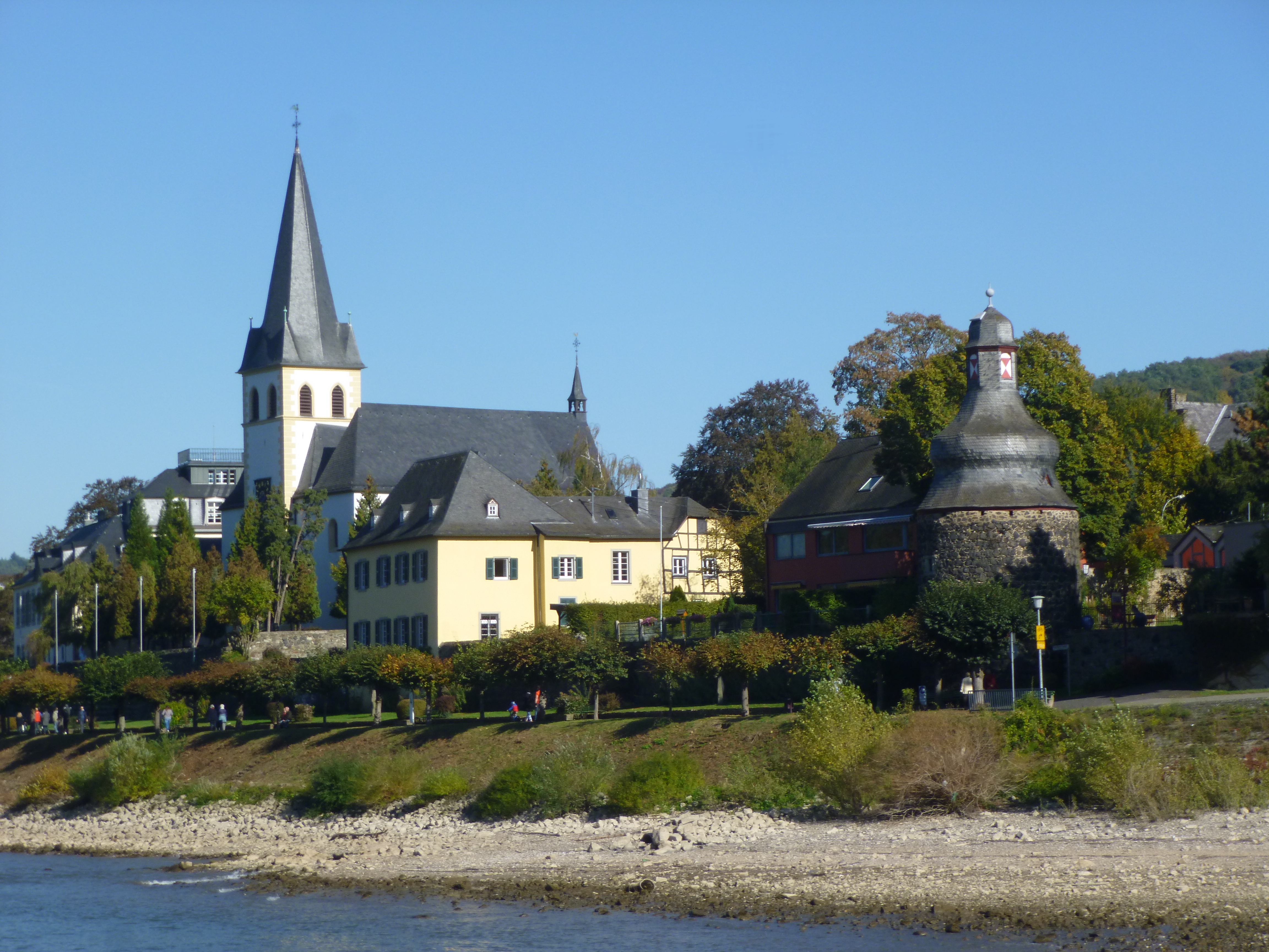 Die Insel Nonnenwerth (früher auch Rolandswerth) ist eine Insel im Rhein bei Rolandseck auf der Landesgrenze zwischen Nordrhein-Westfalen und Rheinland-Pfalz. Seit ca. 1126 (mit Unterbrechungen) Sitz eines Nonnenklosters, heute ein koedukatives Privatgymnasium. |
