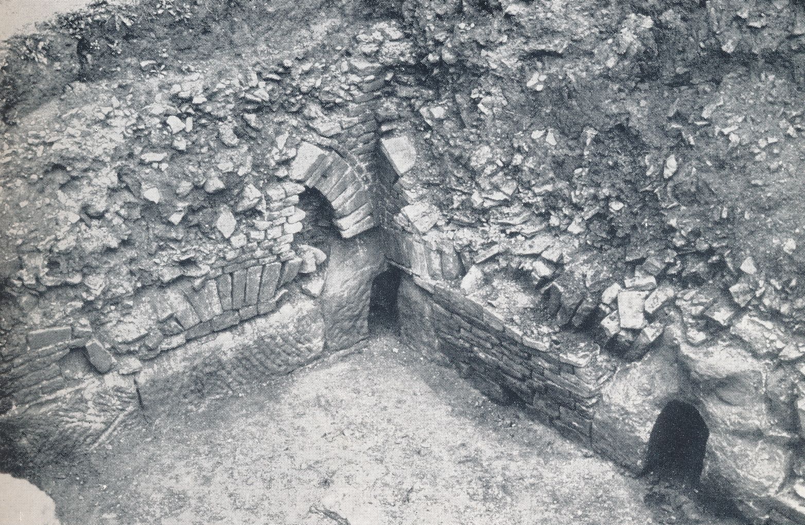 Fundament aus Tuffsteinquadern, Mauerkrone aus halbrunden Sandsteinquadern