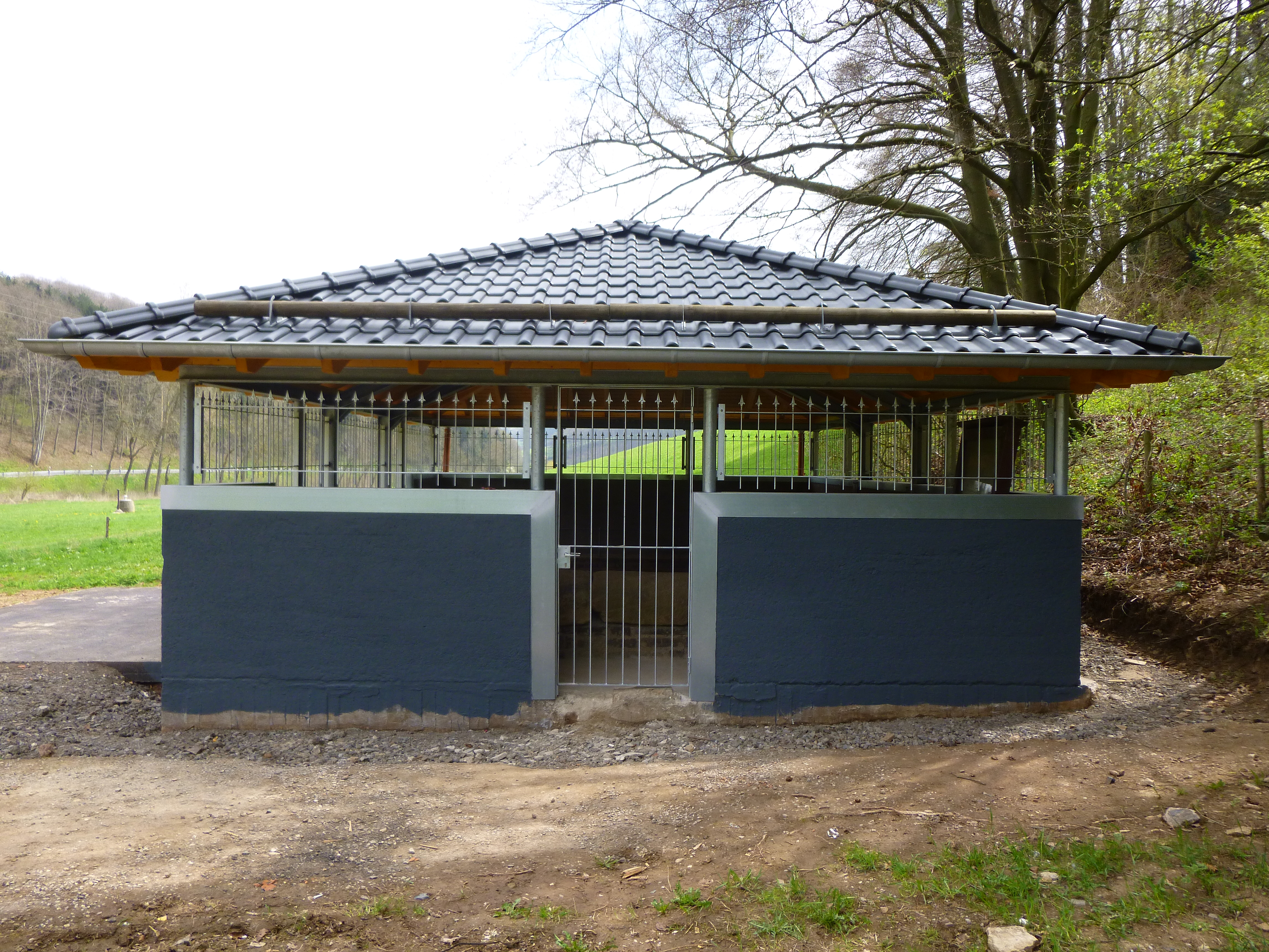 der Schutzbau unmittelbar vor der Vollendung 2013: das Dach ist aufgeständert, dadurch