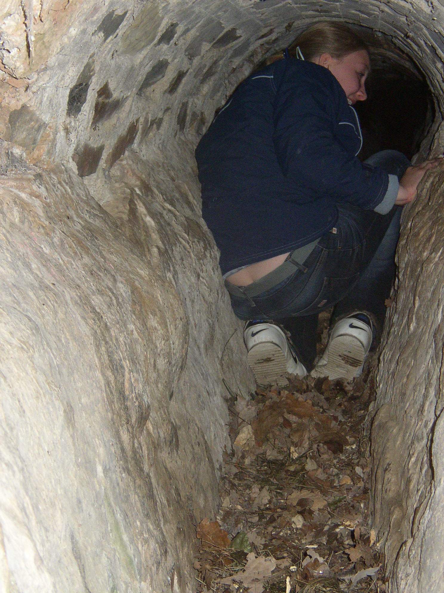 Zustand2004; auf den Bildern kriecht die Schülerin Sabrina in den Kanal. |