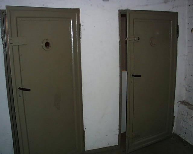 Es sind Türen, wie sie in Gefängnis üblich sind: Guckloch, zwei Riegel, auf der Innenseite keine Türklinke. Die Verwendung der beiden Räume ist unsicher.